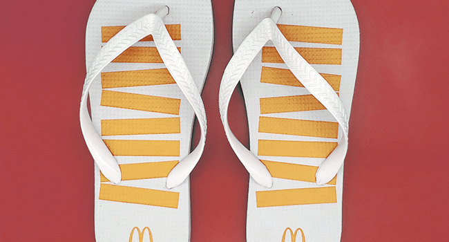 Fazemos chinelos para marcas, com etiquetas emborrachadas em alto relevo nas tiras.